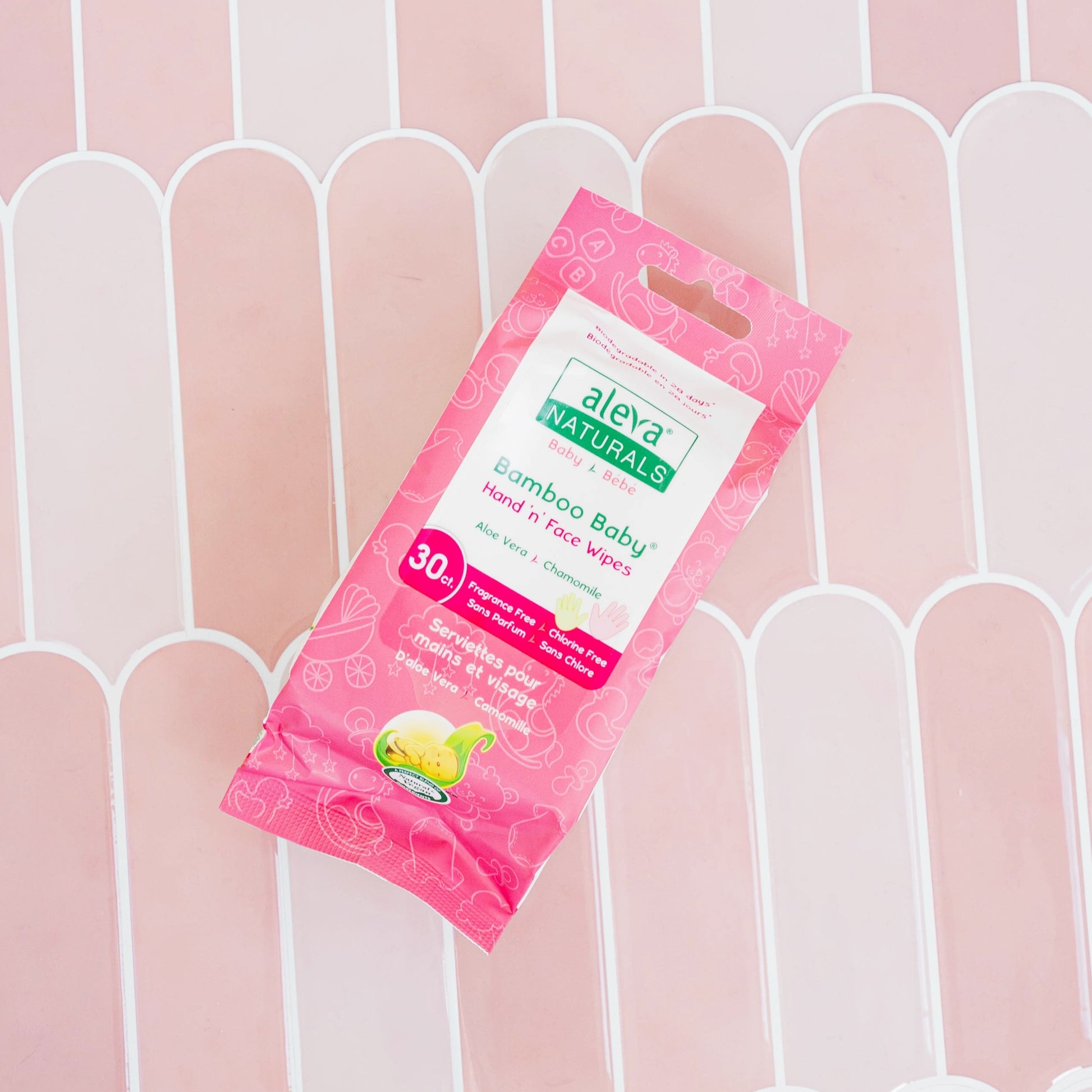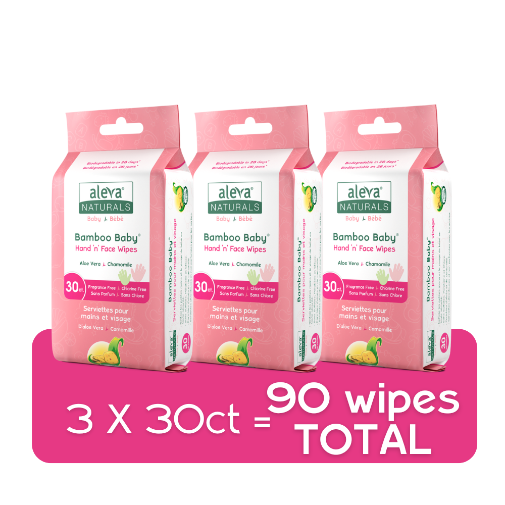 Keep your baby's hands and face clean with the Aleva Naturals Bamboo Baby Hand & Face Wipes. These convenient wipes are formulated with Organic Aloe Vera and Chamomile Oil that gently clean and moisturize your baby's delicate hands and face. These Bamboo wipes are feathery soft, durable, unbleached and biodegradable in 28 days. Plus, they're sleek enough to fit in a diaper bag or purse, making them perfect for when you're on the go! Like all Aleva Naturals products, the Hand & Face wipes are made with premium quality ingredients, so you can enjoy a safe product without harsh chemicals or additives.