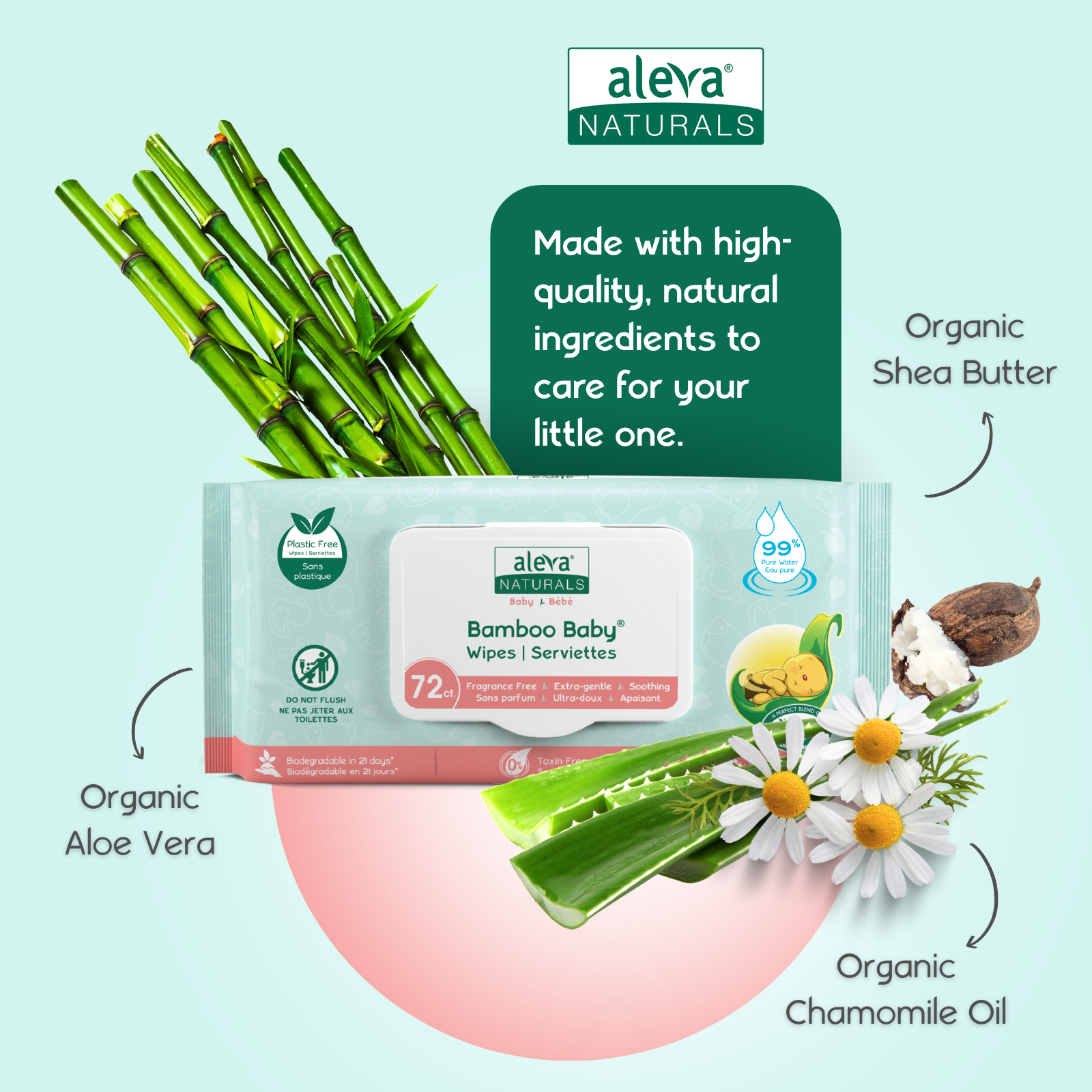 The Bamboo Baby Sensitive Wipes (72ct) are enriched with a combination of Organic Shea Butter, Organic Olive Oil, Aloe Vera, and Chamomile Oil that gently cleanses, soothes, and leaves your baby's skin feeling silky smooth. Formulated for newborns, babies & toddlers.