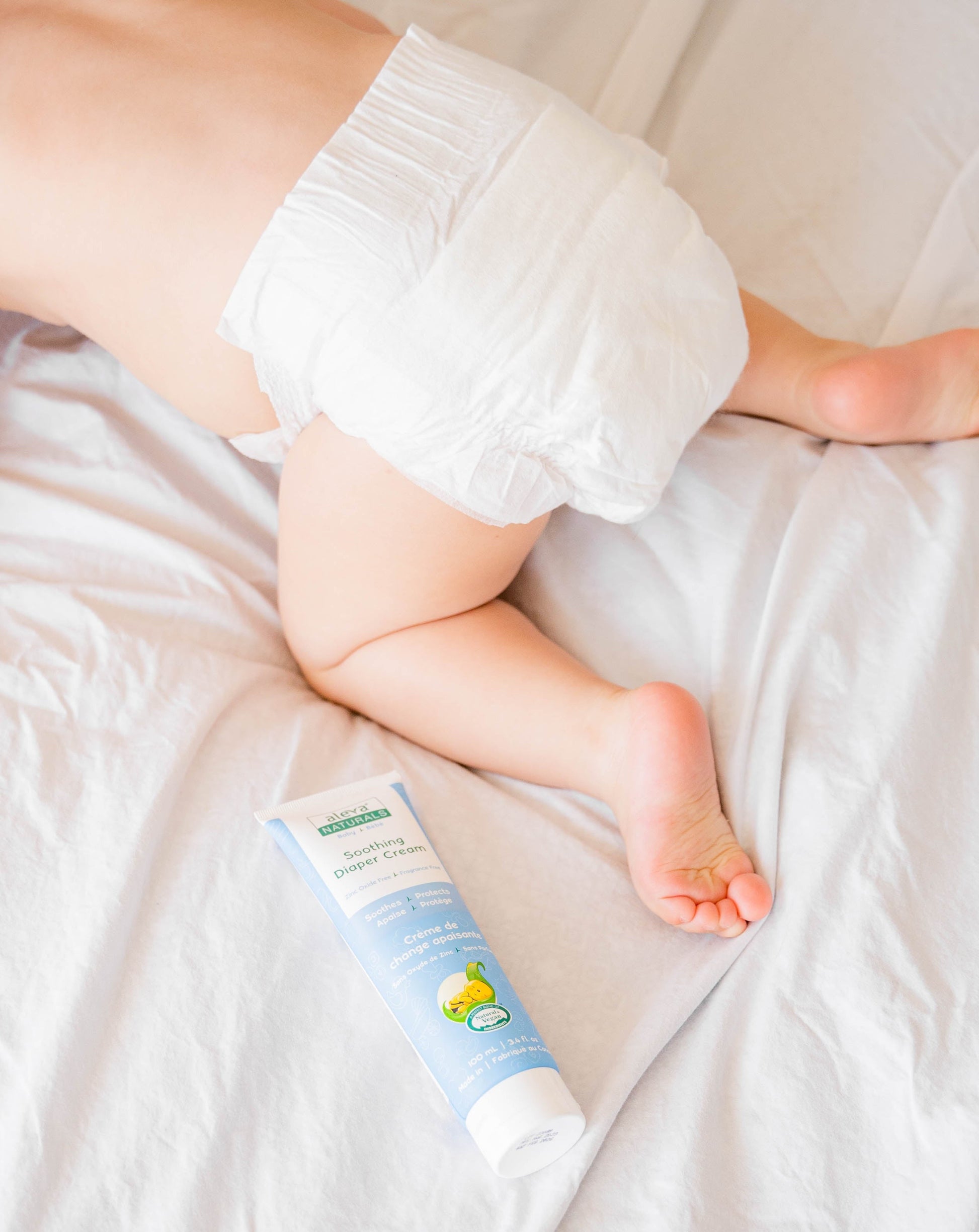 Gently soothe your baby's bum with Aleva Naturals Soothing Diaper Cream. It's a smooth, non-greasy formulation that will leaving your baby’s bottom feeling soft and silky-smooth. Enriched with natural ingredients including: Organic Shea Butter, Aloe Vera and Natural Calendula that help soothe and nurture your baby's bum. This diaper cream is hypoallergenic, free of Zinc Oxide, Beeswax, Lanolin, parabens, phthalates, sulfates, and dyes. Like all Aleva Naturals products, the Soothing Diaper Cream is made with premium quality ingredients, so you can enjoy a safe product without harsh chemicals or additives. Formulated for newborns but is also suitable for babies & toddlers.